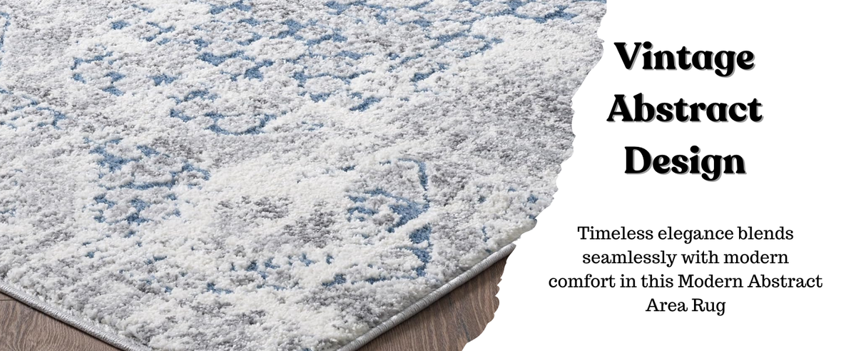 - Versatile Design: Featuring a stunning Vintage Patched design with a blend of off-white, blue, and grey colors, this abstract distressed area rug serves as a perfect centrepiece for your bedroom, living room, nursery, or hallway. Its elegant design enhances the decor of any space.