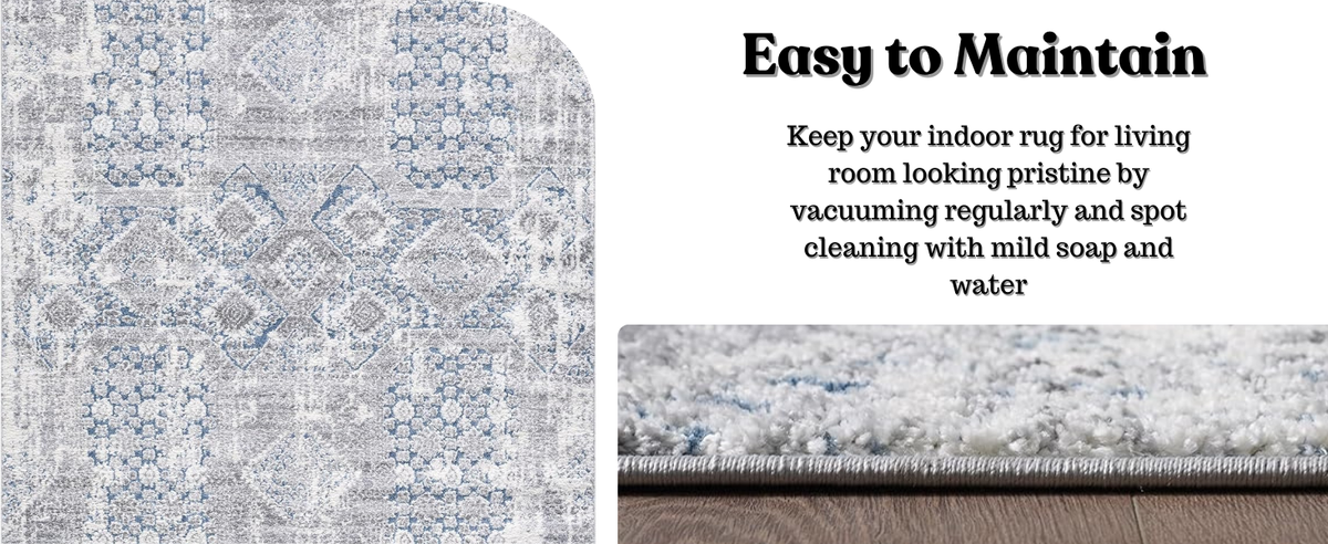 - Easy Maintenance: This indoor rug for living room is easy to maintain, ensuring it looks great over time. Simply vacuum regularly and spot clean with mild soap and water to keep it fresh and clean. The stain-resistant properties make it a practical choice for busy households.
