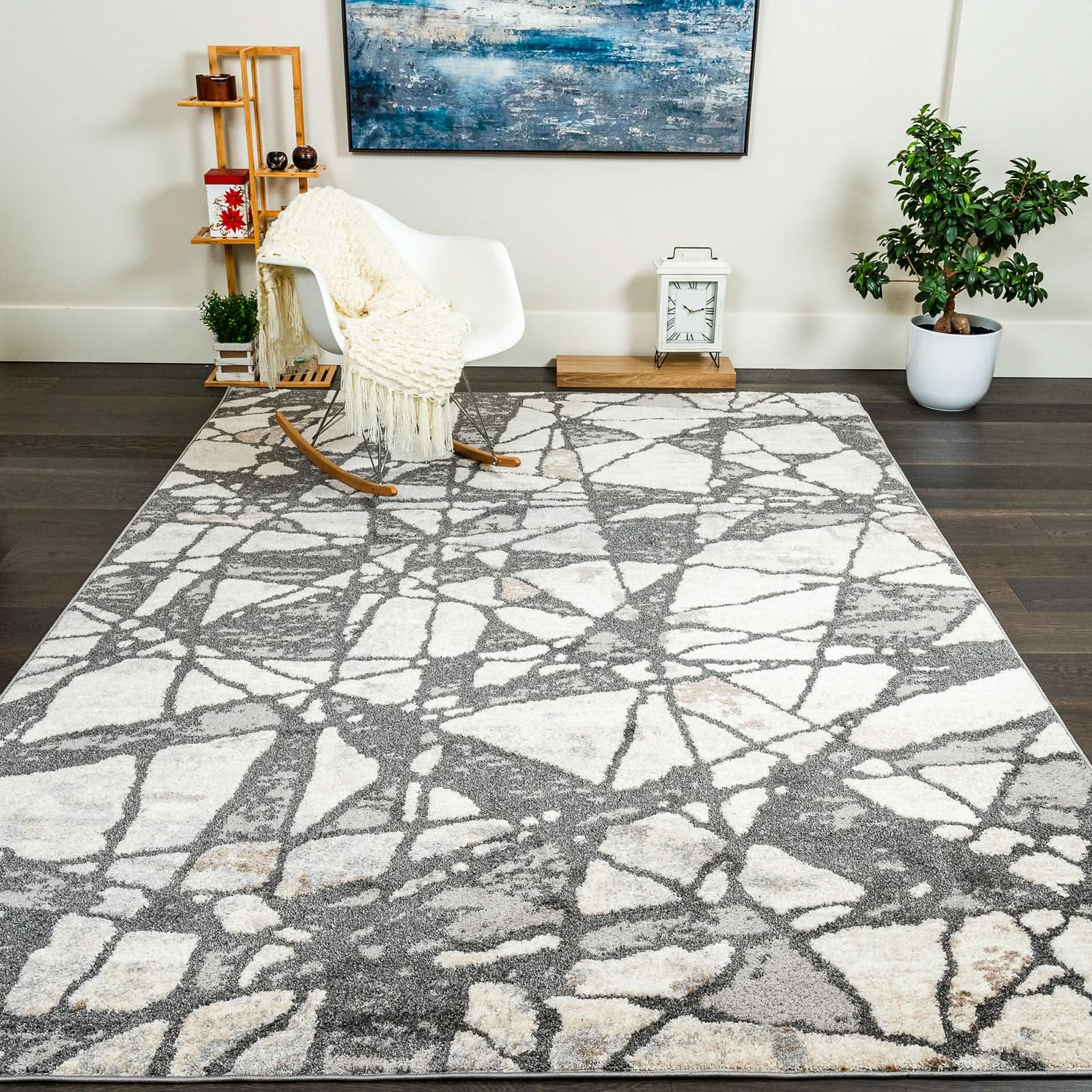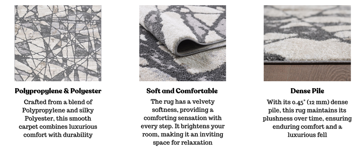 Whether you're looking for a statement piece or a subtle accent for your home, this grey & beige color carpet is a must-have. Not only durable but also luxuriously soft beneath your feet, this patterned guest is the perfect accessory to impress your guests with your home decor. It is easy to clean and can be placed in high-traffic areas or homes with children and pets. This triangle area rug features an exquisite abstract broken design that makes it a gorgeous decor piece for your bedroom, living room, dining room, nursery, and more. From parties, and events, to casual everyday use, this contemporary geometric pattern rug is a great choice.