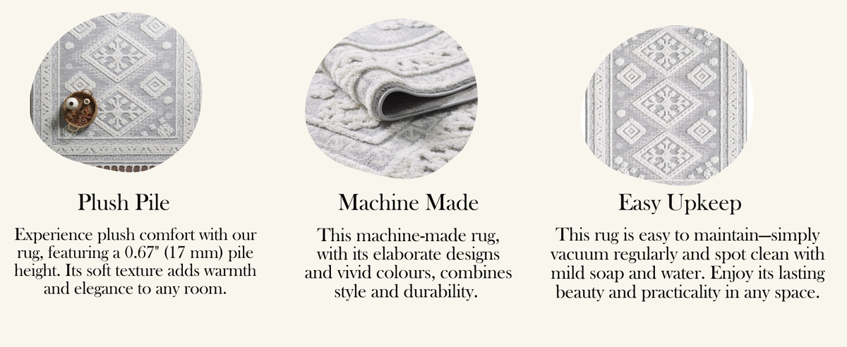 - COMFORTABLE PILE HEIGHT: Featuring a 0.67-inch (17 mm) high-low dense pile, this rug provides a plush and comfortable texture that remains inviting over time. The thick pile height enhances the softness and coziness of the rug.
