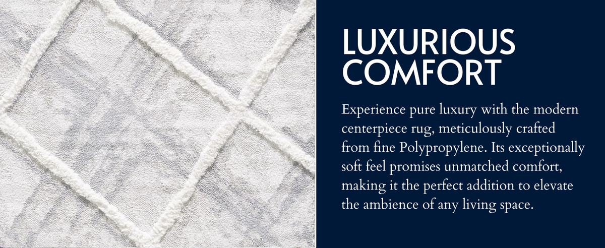 Upgrade your home décor and add a luxurious touch to it by bringing this lattice lines rug from the brand AG Home. The sophisticated white lattice lines beautifully contrast with the grey trellis pattern, creating a striking visual appeal. This versatile design complements various interior styles, from contemporary and modern to traditional and transitional. The low-maintenance construction of this indoor rug for the dining room and living room makes it ideal to place in high-traffic areas. Its fine European weaving technology ensures this rug looks great over time. Whether you need a centrepiece for your living room, a soft landing in your bedroom, or a stylish accent in your dining area, this area rug offers the perfect combination of luxury, style, and durability.
