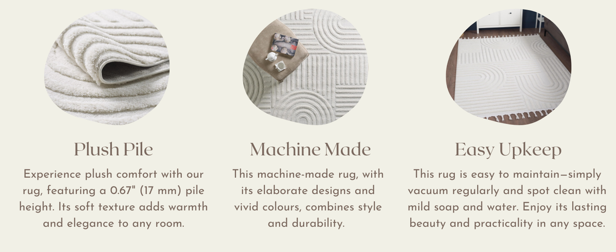 • Stylish and Versatile: The cream color and geometric circle pattern make this soft & plush carpet an elegant centrepiece for your bedroom, living room, nursery, or hallway. The neutral tone complements various dΓ©cor styles, from modern to traditional, adding a touch of sophistication and warmth to any setting.
